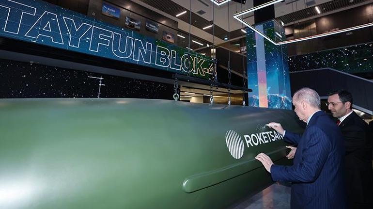 Erdoğan burada Tayfun Blok-4 balistik füzesini imzalayarak yaptığı konuşmada “Kritik hava savunma sistemlerimiz, stratejik füze projelerimiz ve akıllı mühimmat kabiliyetlerimiz için kurulan bu yeni altyapı ile kahraman ordumuzun caydırıcılığını çok daha üst seviyelere çıkaracağız” ifadelerini kullandı.